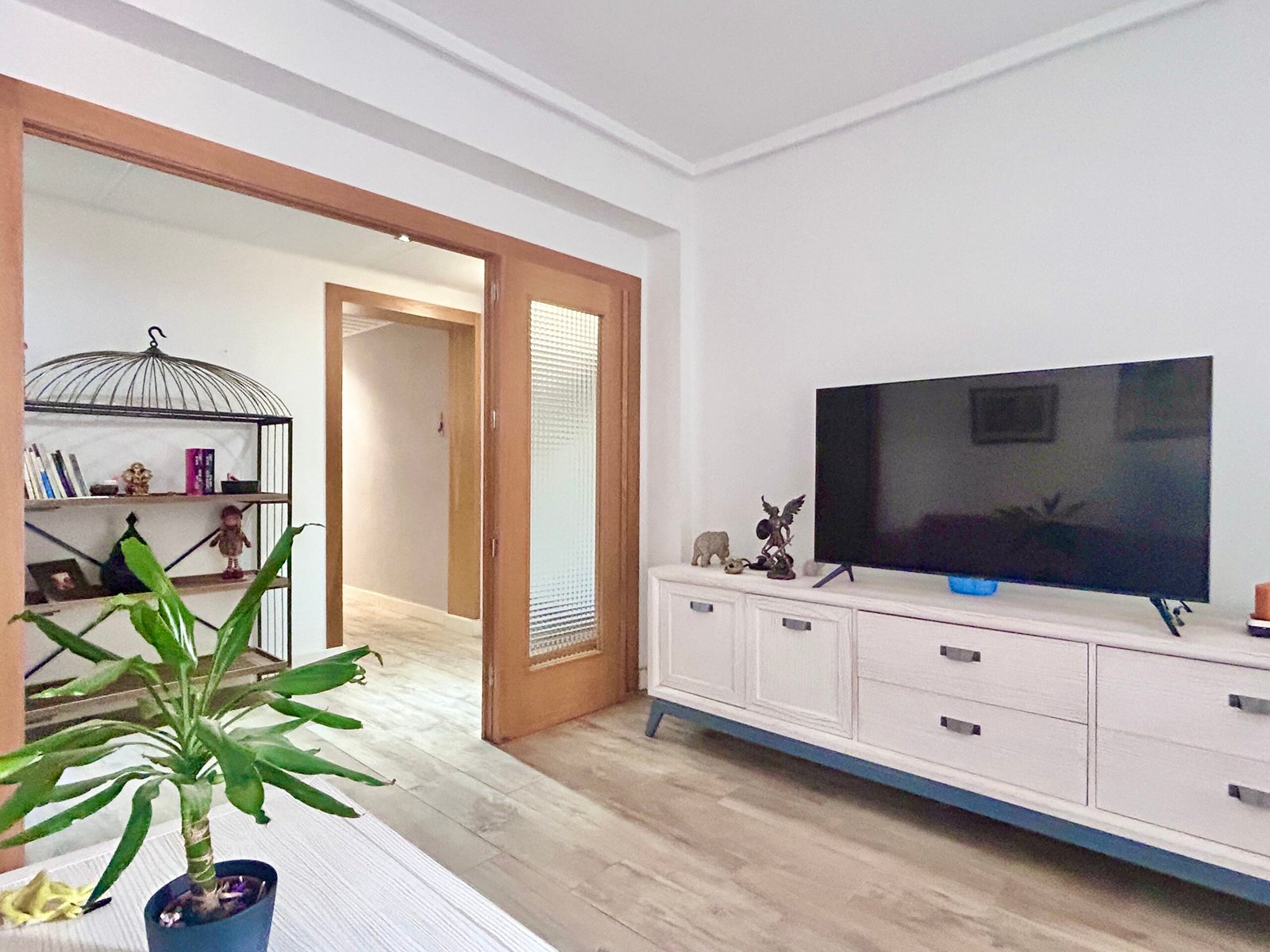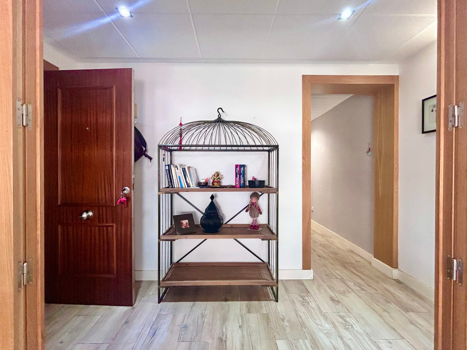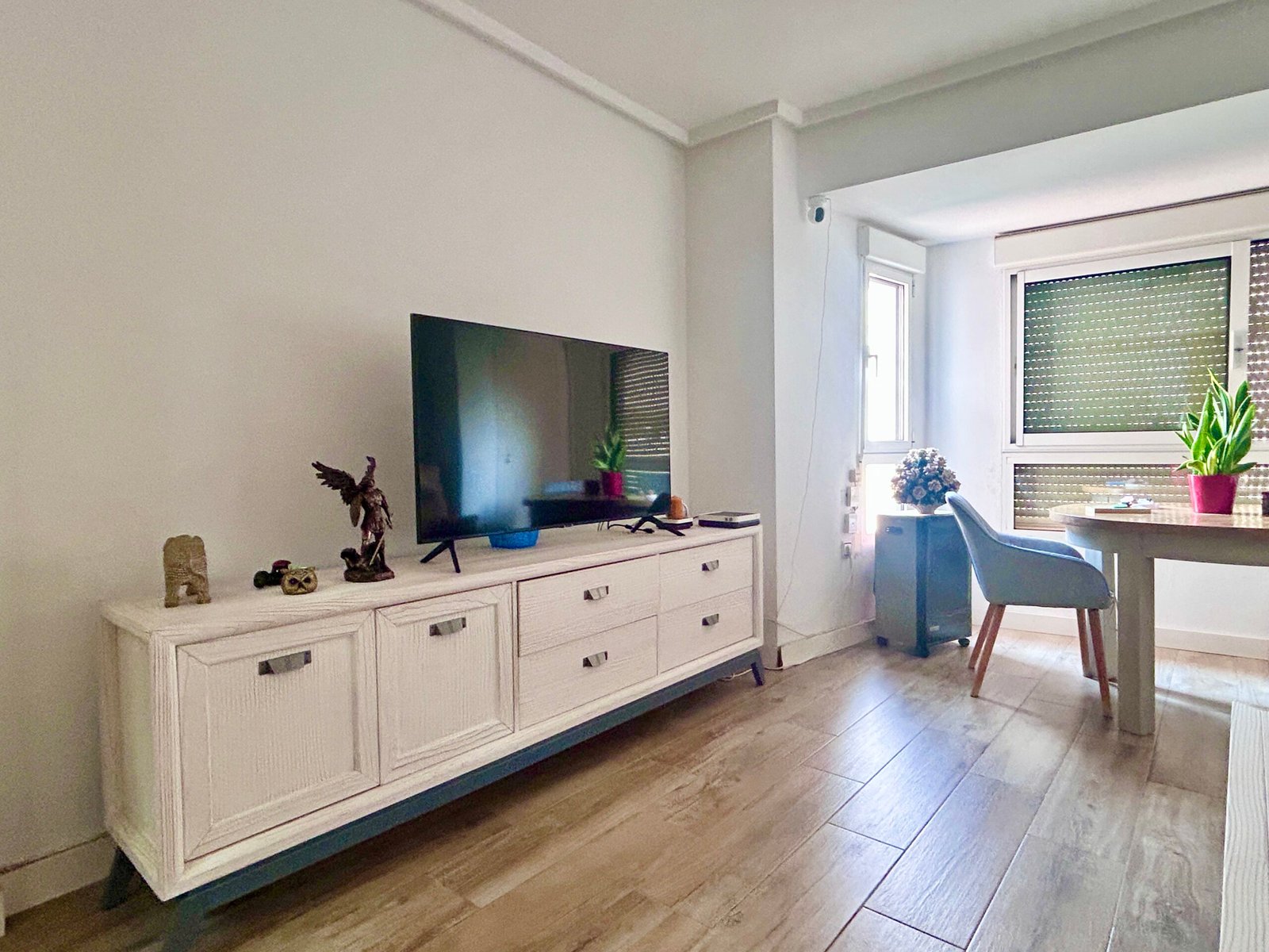 Se trata de una 5ª altura. Cuenta con rampa en el portal y ascensor. La vivienda está reformada con altas calidades: tarima C5 de muy buena calidad, cerramientos de Tekhnal, paredes lisas y aire acondicionado en salón y dormitorio. Son unos 80m2 útiles distribuidos de la siguiente manera.