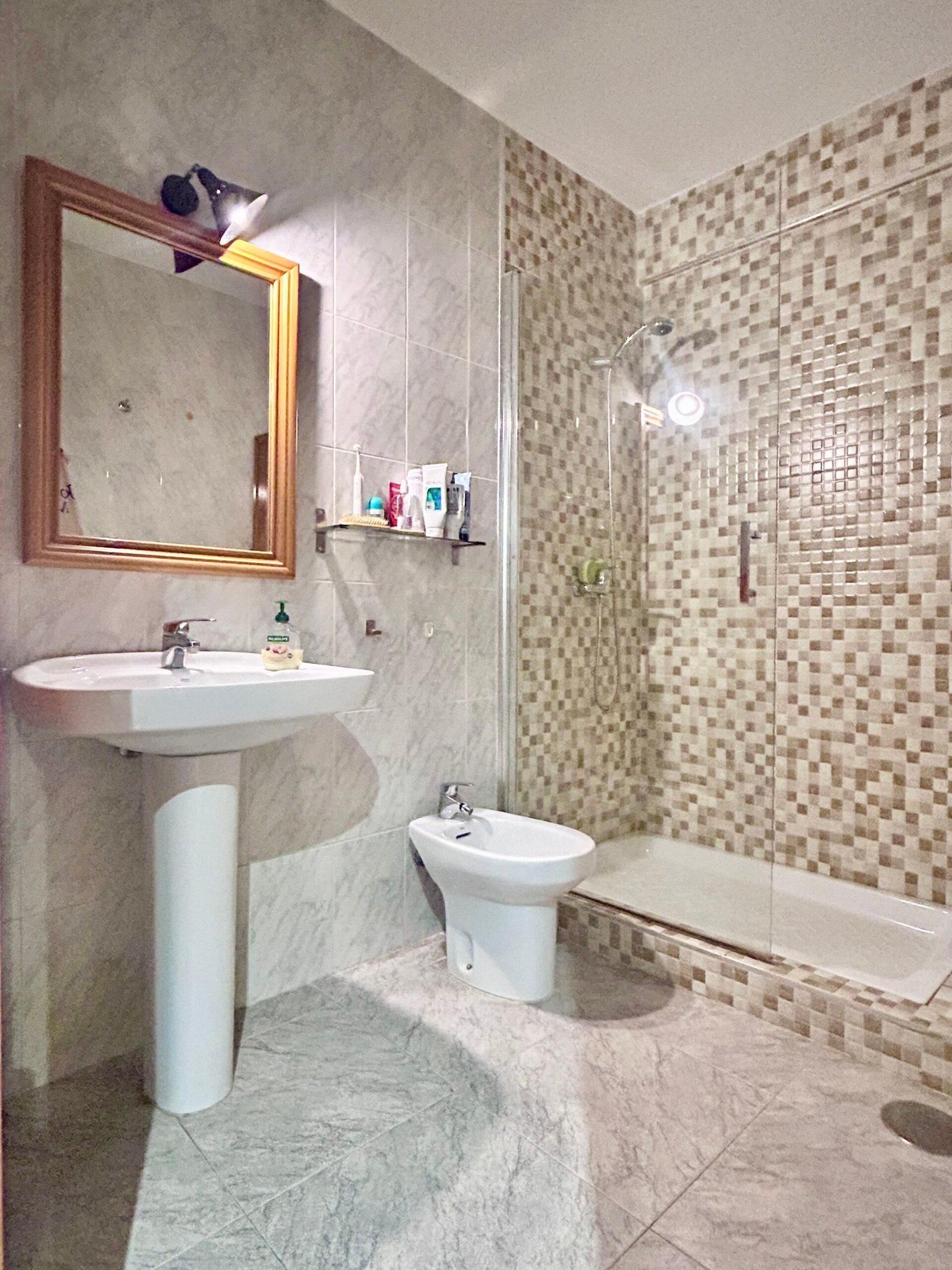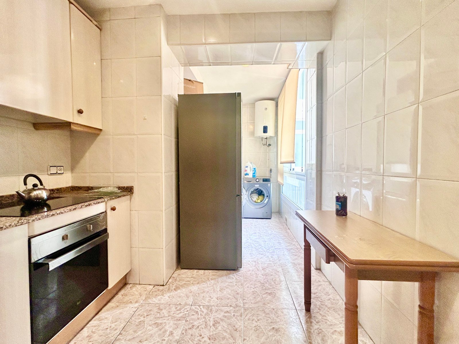 Primero el baño, de muy buen tamaño y equipado con ducha. Seguido la cocina, equipada con todos los electrodomésticos y un ambiente de galería donde está la lavadora y calentador (eléctrico). Terminamos con los dormitorios, ambos con armario empotrado. El primero de tamaño menor y el segundo, el principal y por ello de mayor tamaño y con aire acondicionado por split (aire caliente y frio).